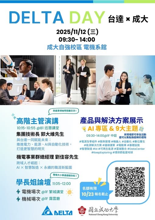 公告 | 【活動公告】台達電子「台達日」將於11月12日於成大電機舉行 |
